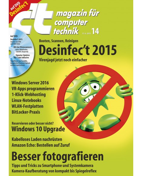Auch 2015 erfreut uns die C't wieder mit einer AntiVirus Boot DVD. Diese liegt dem Magazin 14/2015 bei. Diese kann entweder online bestellt oder im Moment noch im Kiosk käuflich erworben werden. Da es sich nicht um freie Software handelt, dürfen wir diese auch nicht zum Download anbieten. Im Heise Shop kostet sie im Moment noch 4,50 EUR.