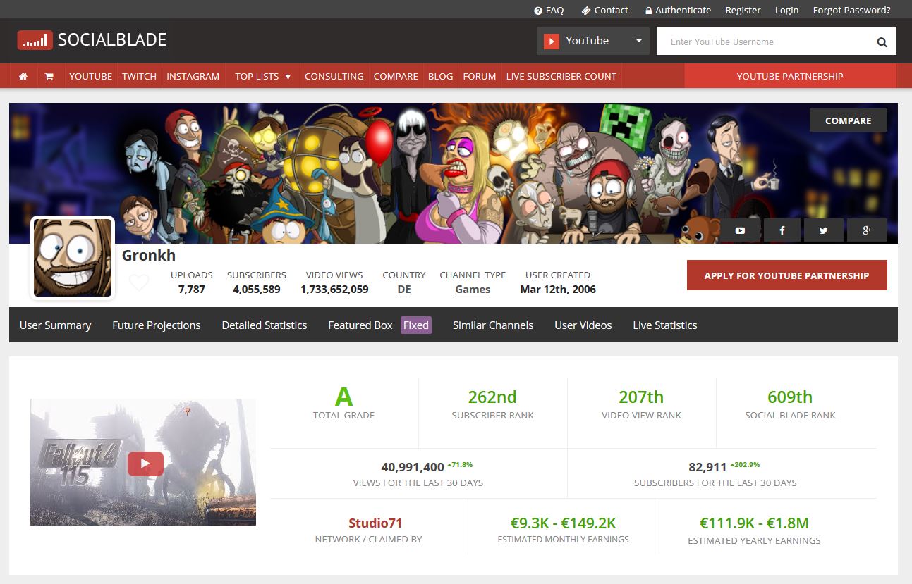 Über die Webseite Socialblade.com bekommt man nicht nur interessante Statistiken zu YouTube Kanälen, sondern auch das jeweilige Netzwerk angezeigt. Allerdings sollte man bei den Informationen etwas vorsichtig sein, denn wenn ein Video des YouTubers wegen Urheberrechtsansprüchen geclaimt wurde, kann das die komplette Anzeige verfälschen. Das ist uns z. B. bei unserem Tech Channel passiert. Dort wird ein Netzwerk angezeigt, welches zu einem Video mit Urheberrechtsansprüchen gehört.