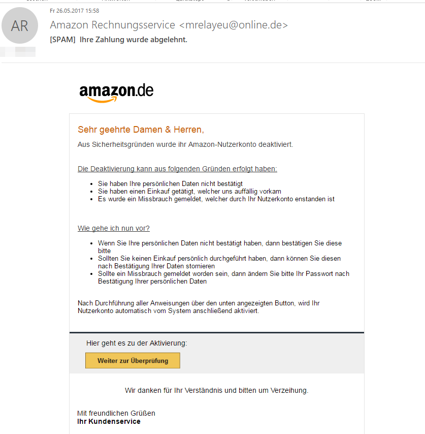 Amazon Phishing-Mail verbreitet sich über deutschen Provider