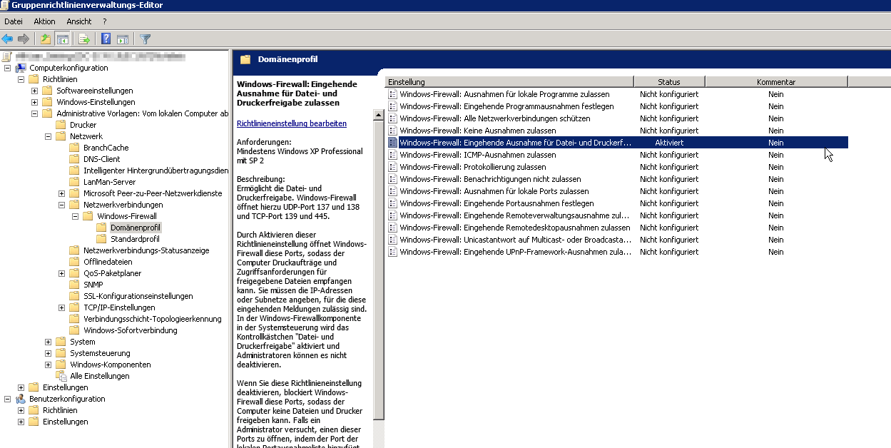 Win7 Dateifreigabe via GPO einschalten