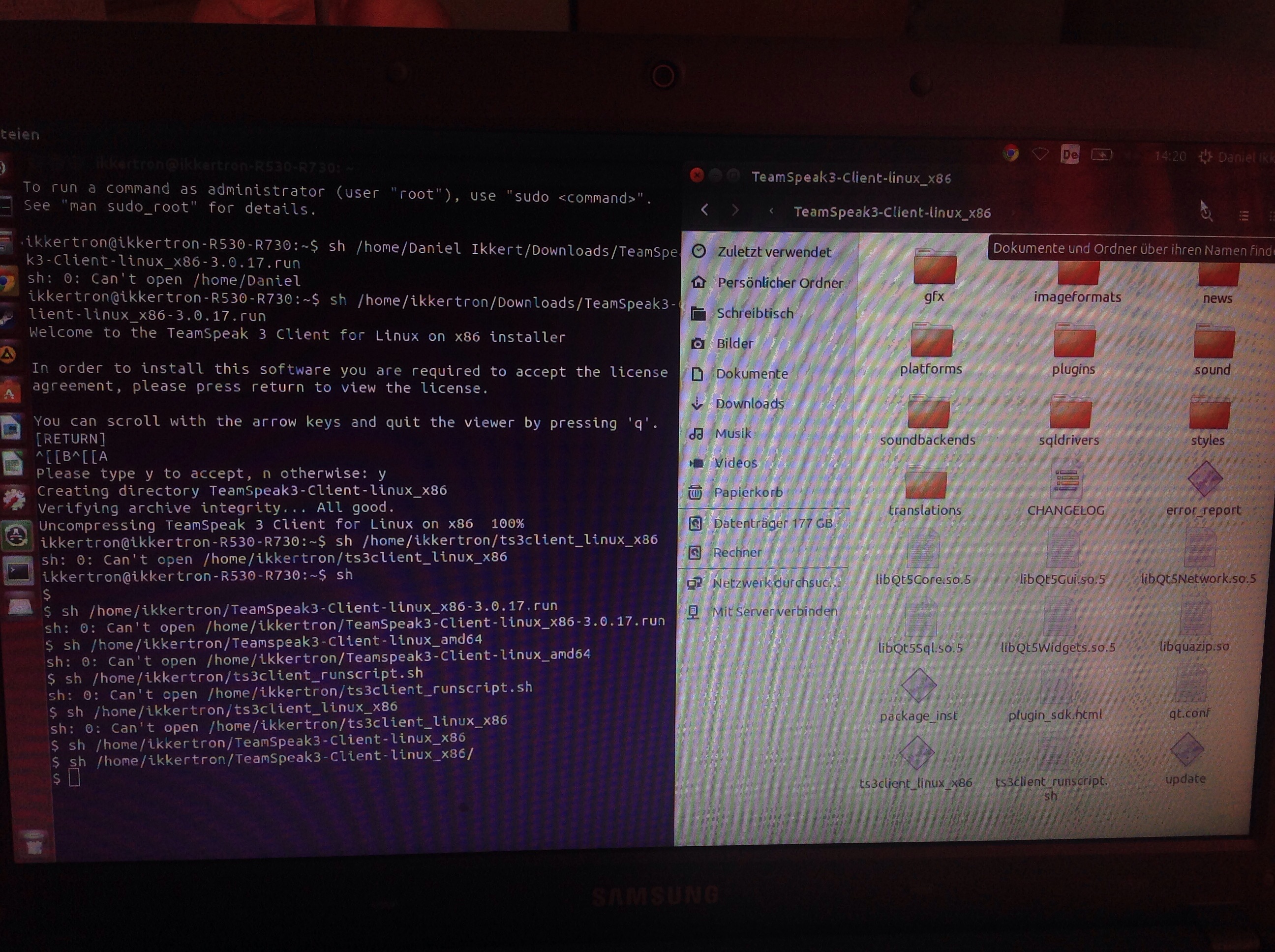 Als ich mir auf youtube das video zu teamspeak angeguckt habe, bemerkte ich fast am Ende das mir der Order //TeamSpeak3-Client-linux_amd64//
